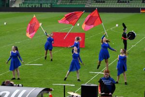 Laat mij meteen met de deur in huis vallen, de jeugd kwam aan zet en hoe! Met een goed getrainde color guard en gebruik van slimme accessoires zetten de Diamond Cadets drum & bugle corps uit Nienhagen (DE) een mooie show neer. Jeugdshowband Irene uit Ede (NL) betrad zelfzeker het terrein. Zonder dirigent (drum major) brachten zij mooie muziek die samen bleef. Slagwerk dat netjes uitgevoerd werd ondersteunde de totaliteit. Gedisciplineerd en goed voorbereid wist elke muzikant wat verwacht werd. Deze kinderen leren wat samen muziek maken is. Bravo!